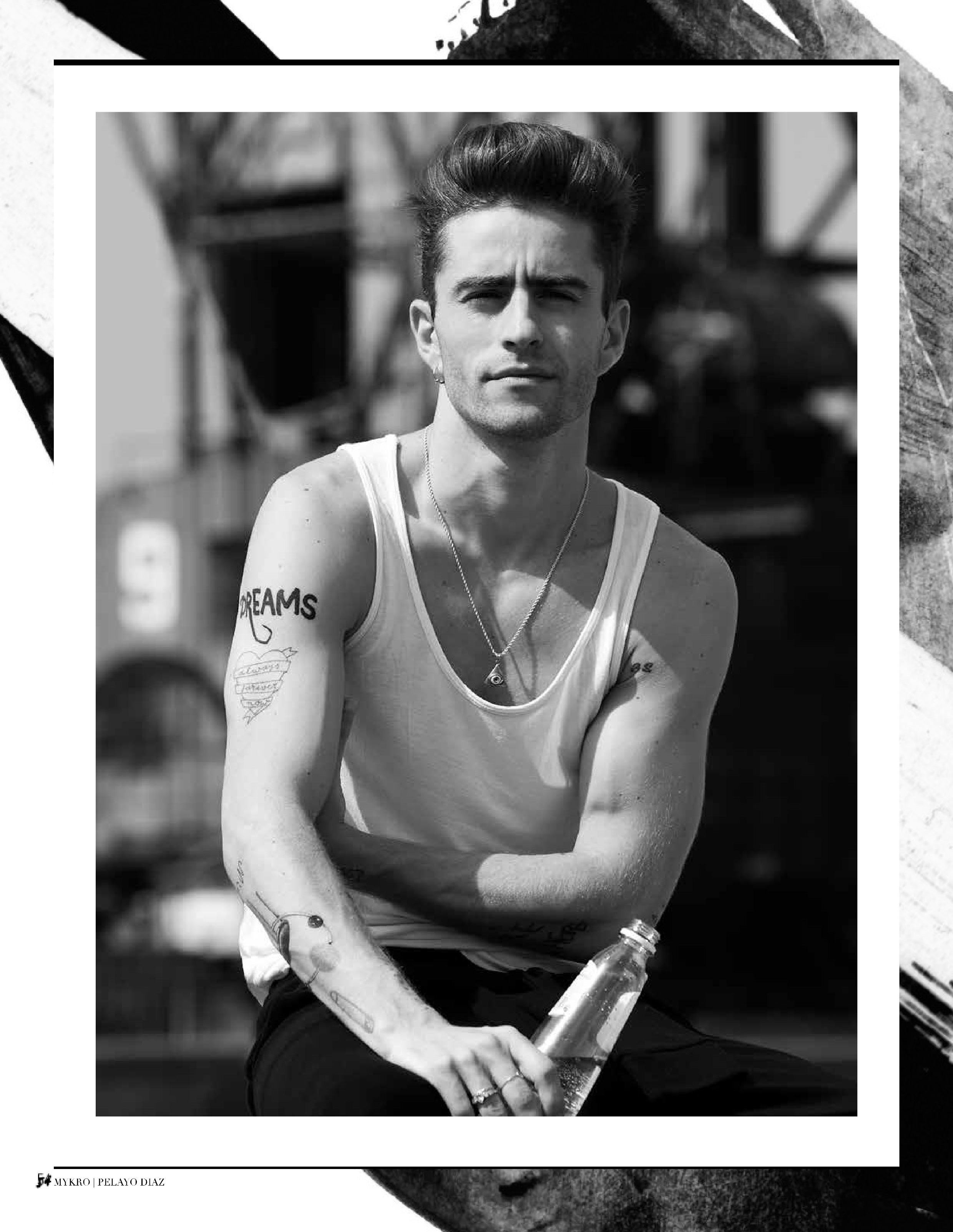 PELAYO: I had a couple of them done at the same time, including this one on my upper arm that says ‘dreams’. I think it’s important to dream big and strive for what you believe in but I was also inspired by a sketch I saw in a book about Jack Pierson, an artist whose work I admire. None of my tattoos have really been preplanned and I like that the idea of jutting something down on a paper has that same impulsive quality to it.